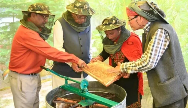 देहरादून। प्रदेश के कृषि एवं कृषक कल्याण मंत्री गणेश जोशी ने अपने शासकीय आवास में शहद उत्पादन के लिए स्थापित किए गए मधुमक्खी के बक्सों से शहद निकाला। उन्होंने जानकारी दी कि 30 बक्सों से लगभग 60 किलोग्राम शहद निकाला गया। उन्होंने इस कार्य के तकनीकी विशेषज्ञों से शहद उत्पादन की प्रक्रिया के बारे में भी जानकारी प्राप्त की।