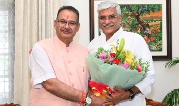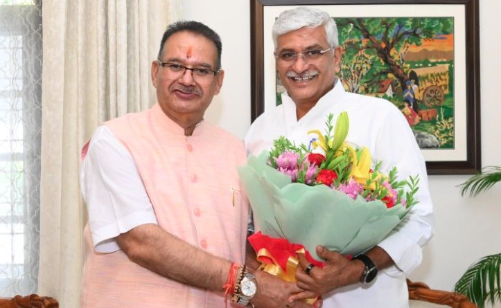 देहरादून। कैबिनेट मंत्री गणेश जोशी ने आज केंद्रीय पर्यटन एवं संस्कृति मंत्री गजेंद्र सिंह शेखावत का उत्तराखण्ड आगमन पर पुष्पगुच्छ भेंट कर स्वागत एवं अभिनंदन किया।