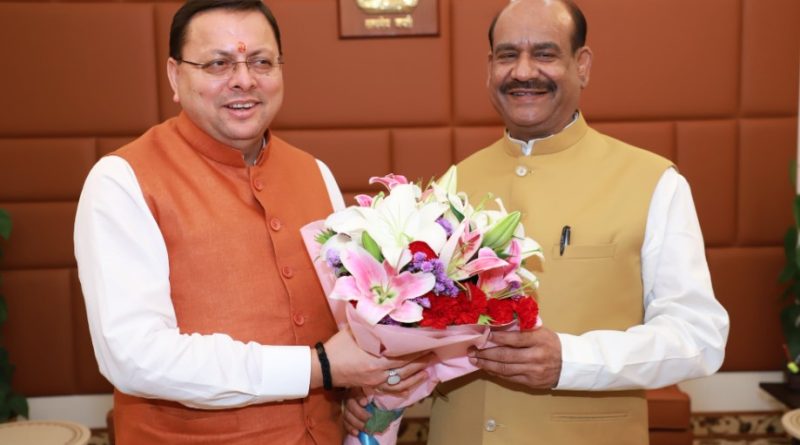 मुख्यमंत्री धामी ने लोकसभा अध्यक्ष ओम बिरला से की शिष्टाचार भेंट