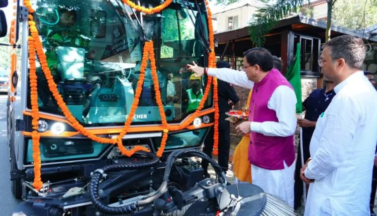 मुख्यमंत्री धामी ने वैक्यूम बेस्ड रोड स्वीपिंग मशीन का किया फ्लैग ऑफ