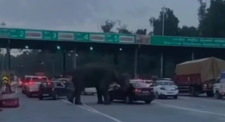 लच्छीवाला टोल प्लाज़ा पर फिर हाथी का आतंक, टोल बैरियर तोड़ा, गाड़ी पलटने की कोशिश