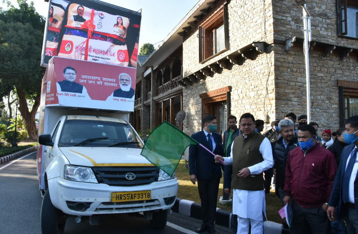 मुख्यमंत्री धामी ने लोक कल्याणकारी योजनाओं एवं नीतियों के व्यापक प्रचार- प्रसार के लिए विकास रथ का किया फ्लैग ऑफ