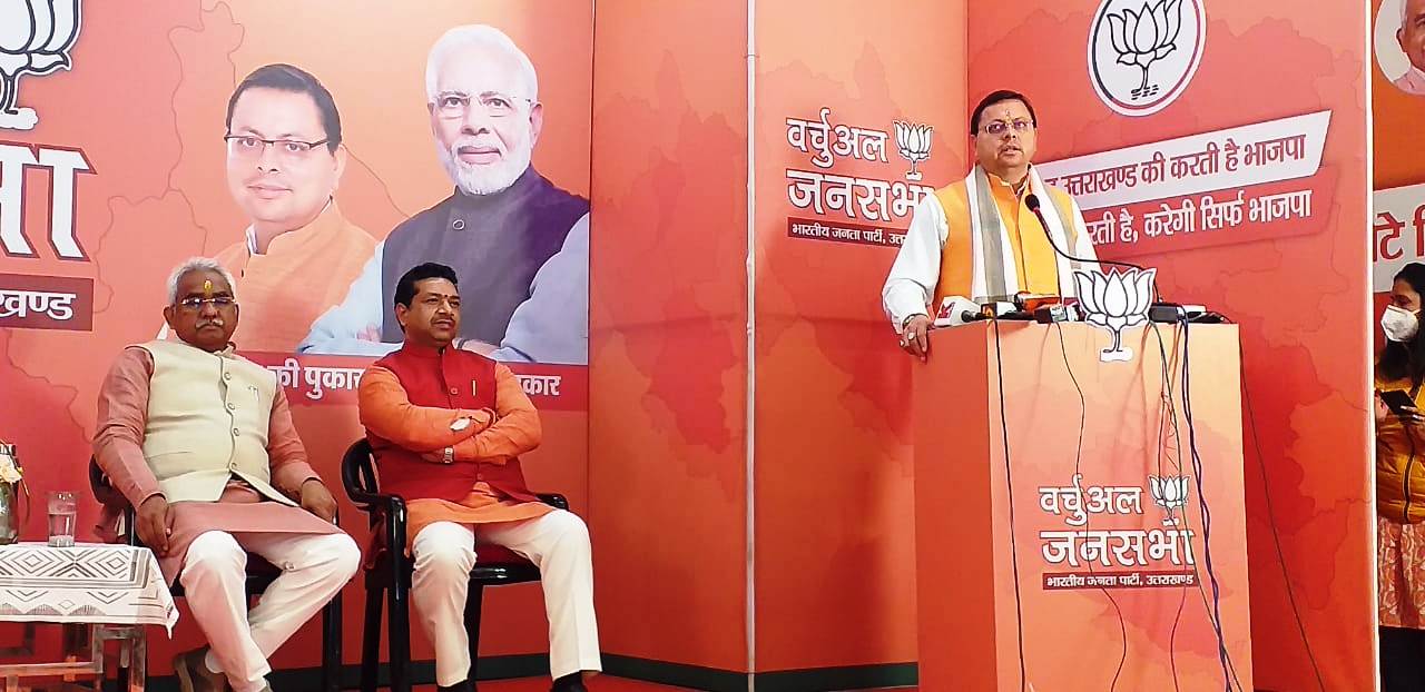 बीएसएनके न्यूज / देहरादून डेस्क। कोरोना महामारी के बीच चुनावी गाइडलाइन के मद्देनजर उत्तराखंड भाजपा ने अन्य पार्टियों पर बढ़त बनाते हुए आज पहली वर्चुअल सभा की । देहारादून स्थित पार्टी के स्टुडियो से अपने सम्बोधन में सीएम पुष्कर सिंह धामी ने कहा कि केंद्र सरकार की मदद से राज्य में संचालित 1.5 लाख करोड़ की योजनाएँ और प्रदेश सरकार के विकास कार्यों का जन आशीर्वाद भाजपा को 60 पार के रूप में मिलेगा।
