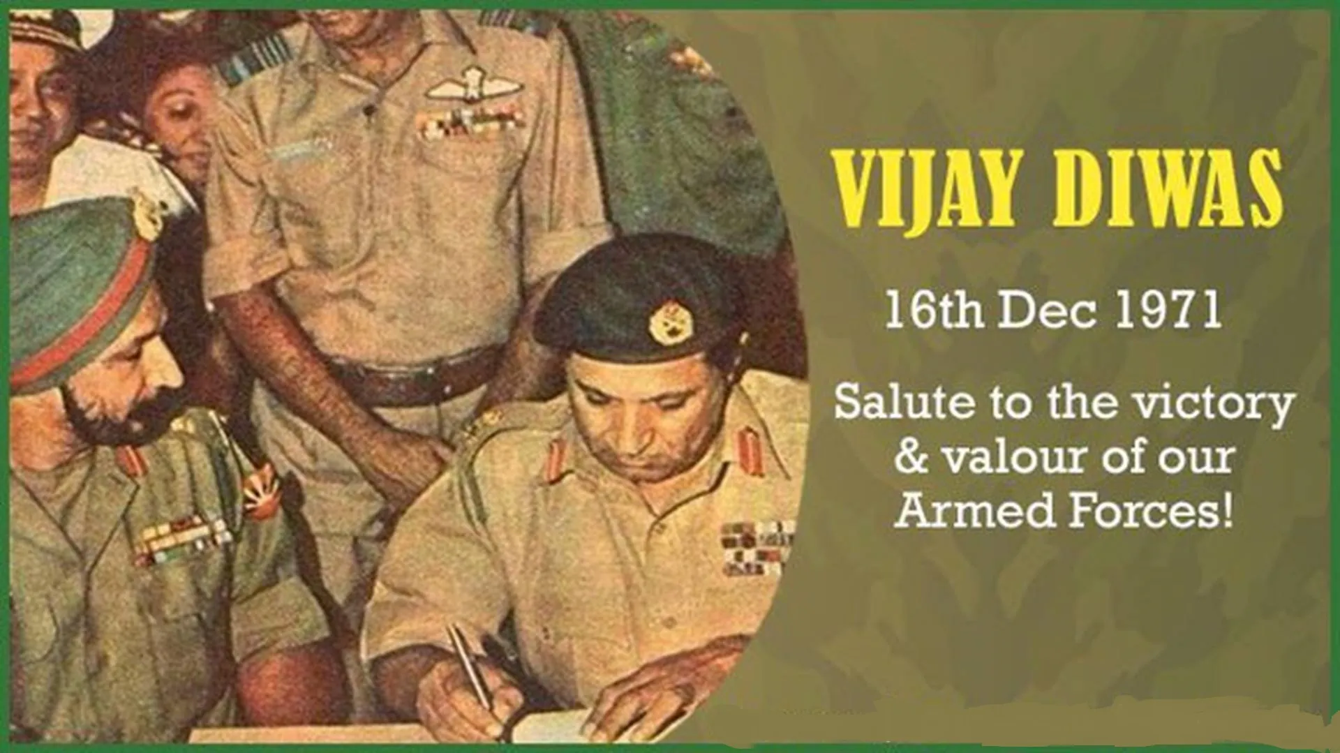 बीएसएनके न्यूज संवाददाता / देहरादून डेस्क। मुख्यमंत्री पुष्कर सिंह धामी ने विजय दिवस के अवसर पर भारतीय सेना,भूतपूर्व सैनिकों,देश एवं प्रदेश वासियों को बधाई दी है। मुख्यमंत्री ने कहा है कि भारत के सैन्य इतिहास में 16 दिसम्बर वीरता व पराक्रम का ऐतिहासिक दिन है। इसी दिन मात्र 13 दिन में भारतीय सैनिकों के साहस व बहादुरी के सामने नतमस्तक होकर पाकिस्तानी सेना के 93 हजार सैनिकों को आत्मसमर्पण करना पड़ा था। हमारे सैन्य इतिहास की यह सबसे बड़ी विजय थी।