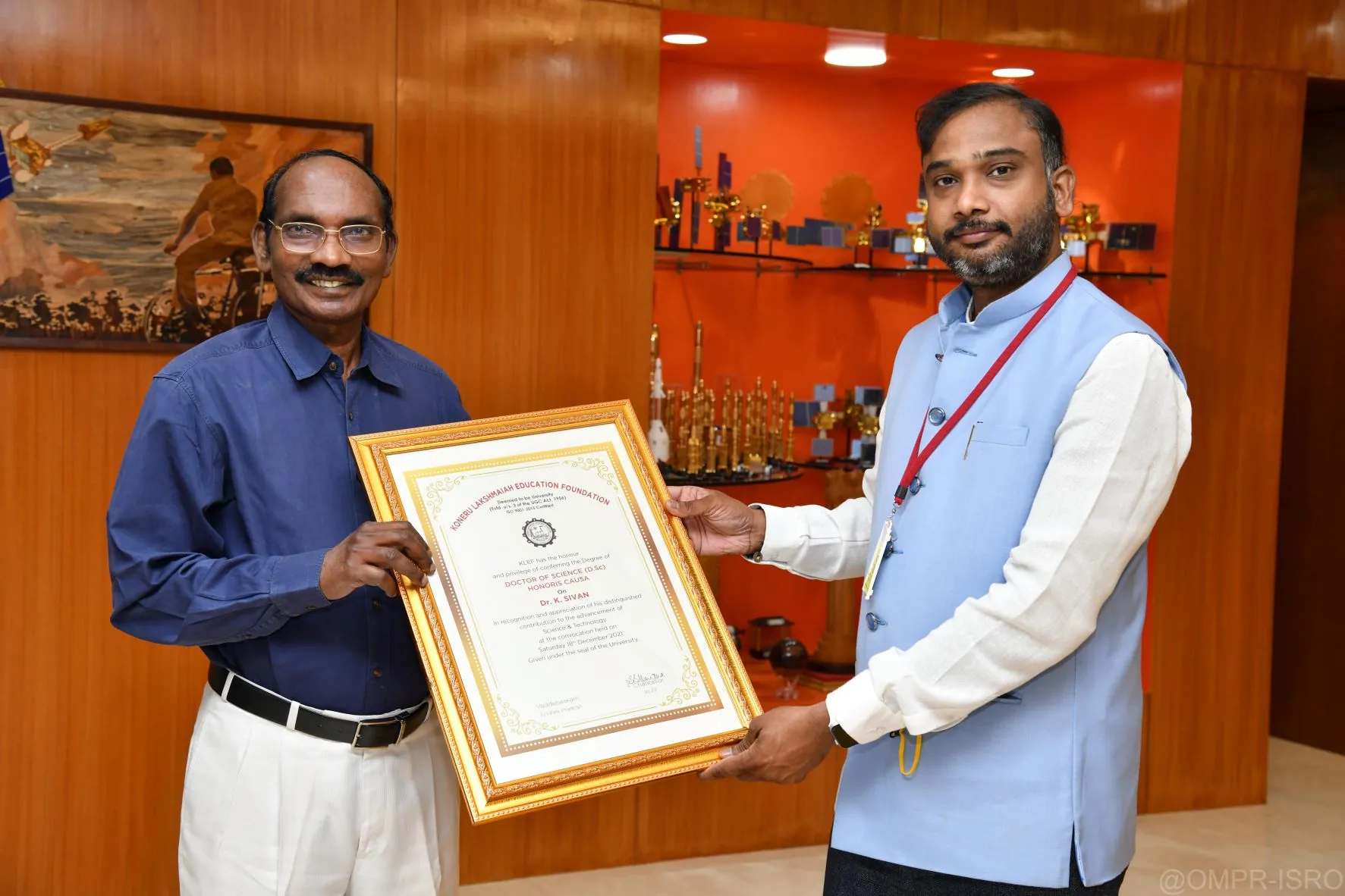 के एल डीम्ड-टु-बी यूनिवर्सिटी की ओर से निदेशक अनुसंधान डॉ. के. सरत कुमार ने बंगलुरू में डॉ. के. सीवान को यह मानद उपाधि प्रदान की। डॉ. के. सीवान, जो कि इस समय बंगलुरू स्थित इसरो के मुख्यालय में कार्यरत हैं, को व्यापक रूप से उद्योग में एक प्रभावशाली आवाज़ माना जाता है। भारत के एरोस्पेस इंजीनियरिंग क्षेत्र में एक प्रेरणादायी व्यक्तित्व के रूप में डॉ. के. सीवान को, अंतरिक्ष प्रौद्योगिकी के क्षेत्र में उनके योगदान के लिए, कई राष्ट्रीय तथा अंतर्राष्ट्रीय पुरस्कारों से सम्मानित किया जा चुका है।